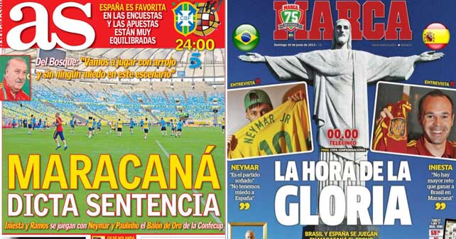 The Madrid press’ focus today is again on the mouth-watering final of the Confederations Cup between Brazil and Spain.