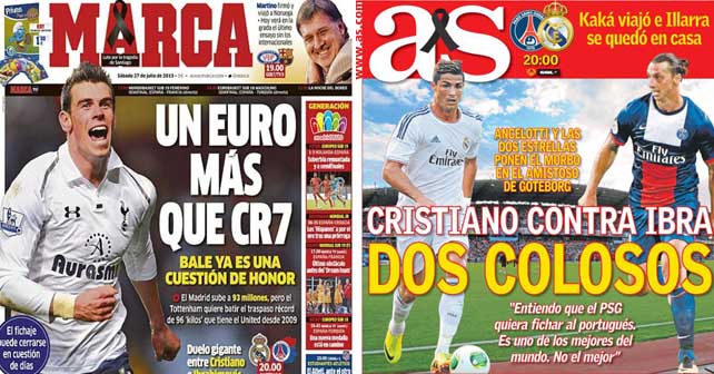 The main headlines today surround the ongoing transfer saga of Tottenham Hotspur winger Gareth Bale. This story will probably rumble on for quite some time yet with five weeks left until the end of the transfer window.