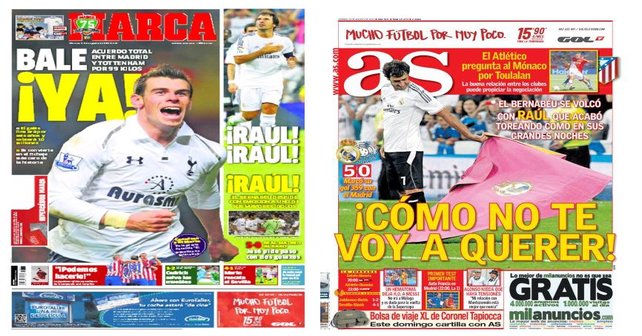 There are two main talking points in the press this morning – the signing of Gareth Bale and the return of Raul.