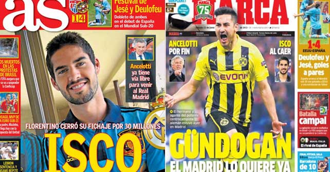Under the front page headline “Isco belongs to Real Madrid”, the paper claims a 30 million euro deal has been agreed between the two clubs and the player himself has agreed personal terms. He will become the third arrival at the Santiago Bernabeu this summer following those of Daniel Carvajal and Casemiro.