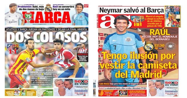 The 36-year-old will play one half for Al-Sadd and another for Real Madrid, and both Marca and AS carry pre-match conference quotes from Raul saying how excited he is to wear the famous white shirt again.