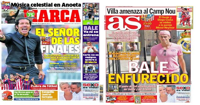 The two main stories dominated Marca and AS today are the same as those that have taken the headlines all week long – the goalkeeper debate, and the imminent arrival of Gareth Bale.