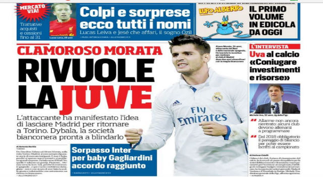 It is a shocking cover page in ‘Il Corriere dello Sport’ because Morata has just arrived to Real Madrid in summer and he’s having several minutes with Zidane. Obviously, the striker is not always in the starting line up but he’s having an important role in the squad. According to the newspaper, Morata misses Italy and he felt more beloved in Italy than in Spain.