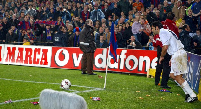 When Figo returned to the Nou Camp again in November 2002, it would create one of the defining images of the Real Madrid-Barcelona rivalry.