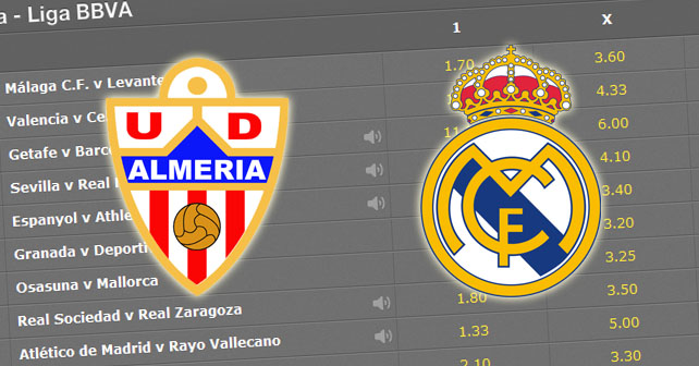 In the last three league games alone, Los Blancos have scored 15 goals, so it will come as no surprise that bookies are offering odd of 3/10 for an away win. Lowly Almeria, who lie in 17th place in the table with just 12 points on the board, are available at 8/1.