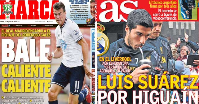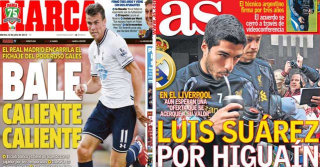 As claims today in its front page that Real Madrid have reach an agreement to sell Gonzalo Higuain to Napoli for 37 million euros and will use that money to sign Liverpool’s Luis Suarez.