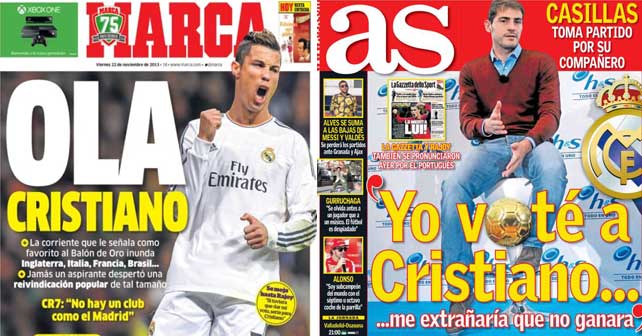 As main focus on their front page is on Iker Casillas’ vote. The captain of the Spanish national team confessed: “I voted for Cristiano and I would be surprised if he didn’t win.”