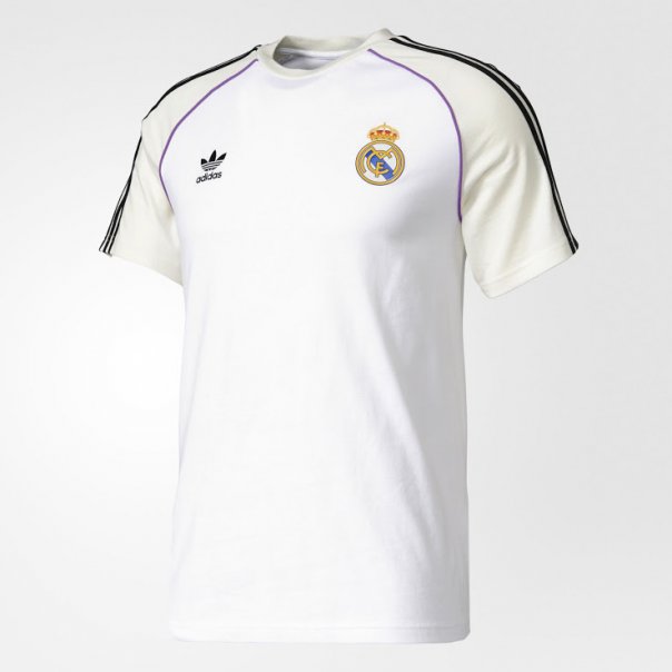 As you can see in the picture, Los Blancos still have the white t-shirt, obviously, with the purple and black stripes. It’s quite different from the one Real Madrid have right now.