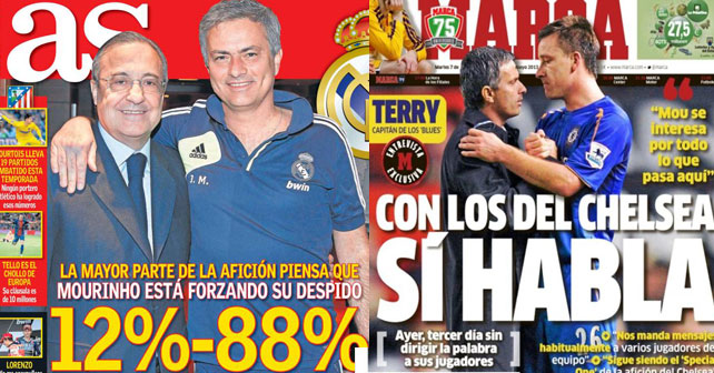 The other main Madrid sports newspaper claims in its front page that Mourinho has not spoken to his players for three days.