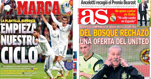Meanwhile, the other main Madrid-based sports daily, Marca, publishes a special report on Real Madrid players claiming their era has begun. “They believe La Decima is just the start of a golden age,” Marca state. “Now they feel freed, without pressure, and they think that will help them in the future,” they add.