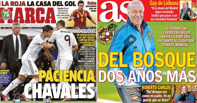 Spain’s most sold sports newspaper, Marca, claims today that Carlo Ancelotti has asked Real Madrid youngsters Morata, Jese Rodriguez and Casemiro to be patient.