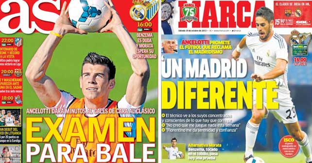 AS main headline is “Test for Bale”. Alfredo Relano’s newspaper states Carlo Ancelotti will give the Welshman some minutes in order to test his fitness looking at the next La Liga game, which will be El Clasico against Barcelona.
