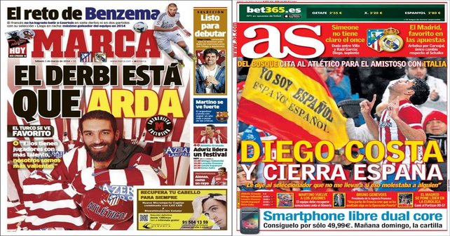 Attention has switched the the Madrid derby which takes place tomorrow, and once again, the focus in the Madrid press is on the Real forward line.