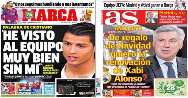 Elsewhere, both Marca and AS also have quotes from fit again Cristiano Ronaldo. The Portuguese international, who is suspended from the Copa del Rey match at the weekend after his sending off on last year’s final, has watched his side continue to win with ease in his absence.