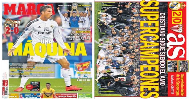 There’s one main story in the press this morning – Real Madrid winning the European Super Cup. Los Blancos defeated Sevilla 2-0 in Cardiff to lift their first piece of silverware this season.