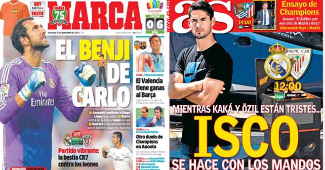Real Madrid host Athletic Bilbao at midday and the press is dominated this morning by Carlo Ancelotti’s decision to stick with Diego Lopez in goal ahead of Iker Casillas.