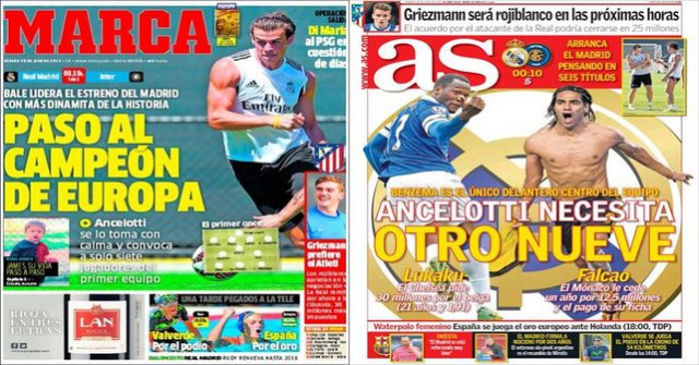 The Madrid-based papers are focusing on transfer talk again this morning though, and this time it’s the search for a number nine. Despite having a wealth of attacking options, only Karim Benzema can really play the number nine role, and the club just sold Alvaro Morata. Jese Rodriguez is expected to be out injured until around November and will take time to get up to match speed again,