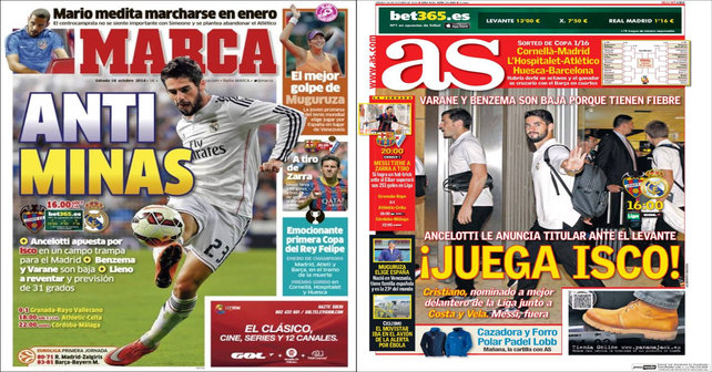 With a huge Champions League fixture against Liverpool looming large on Wednesday, the papers this morning say Carlo Ancelotti may not play all of his big guns, so there should be some playing time for Isco. The midfielder is keen to get more first team action at the club and recently challenged the boss to follow up on an interview in which he said the 22-year-old deserves to play more.
