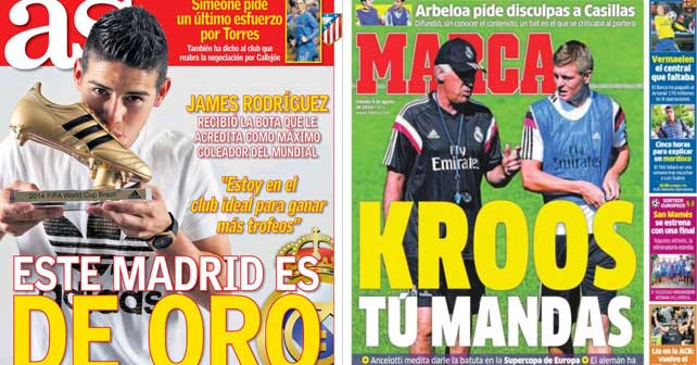 Meanwhile, the other main Spanish sports paper, Marca, puts its focus on Carlo Ancelotti giving Toni Kroos the lead for the crucial UEFA Super Cup final. “Kroos, you rule,” they title.