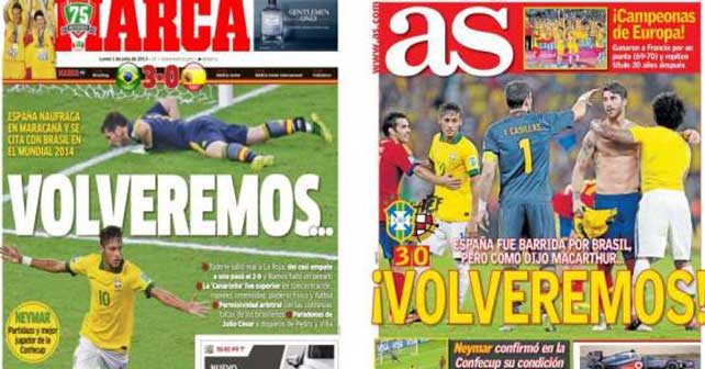The Madrid press, like the rest of Spain, is in mourning today after the mauling in the Maracana. Spain’s 29-match unbeaten run in competitive fixtures was ended in thumping fashion as Brazil beat the World and European champions 3-0 to lift the Confederations Cup.