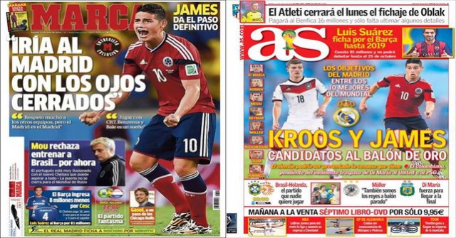 Marca goes with a front cover of James Rodriguez and Toni Kroos, who both feature after having outstanding tournaments. Los Blancos winger Angel di Maria is also on the list.