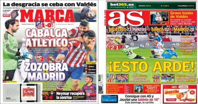 And the Madrid press this morning says Los Blancos have given away the title and handed over their privileged position at the top of the table. Both Marca and AS say the loss was down to the Real player’s ill-discipline and carelessness.