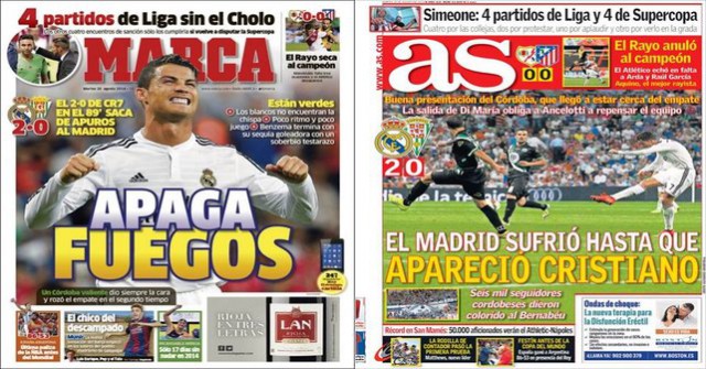 There is plenty of praise for Cristiano Ronaldo, who opened his La Liga account for the new season in the 89th minute. Marca says the forward always puts out Madrid’s fires, while AS says Real suffered until Ronaldo appeared. The 29-year-old has now scored against 47 of the 48 clubs he has played against in a Real Madrid shirt – Dynamo Zagreb being the only side to keep him out.