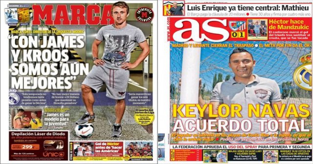 And Marca took some time to interview Luka Modric, with quotes headlining the front page. The Croatian maestro, who pulls the strings in the Los Blancos midfield, said he was happy to see the signings of James Rodriguez and Toni Kroos because it means an already strong squad has got even stronger.