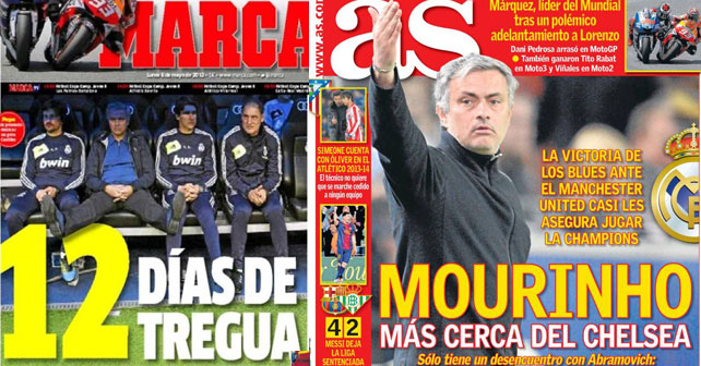 Madrid sports newspaper As brings to its front page the possible signing of Jose Mourinho to Chelsea.