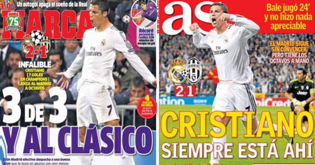 “An effective Madrid beats a fighting Juventus,” they report. “Cristiano Ronaldo, with seven goals in the tournament, puts Los Blancos closer to the next round,” Marca points out.
