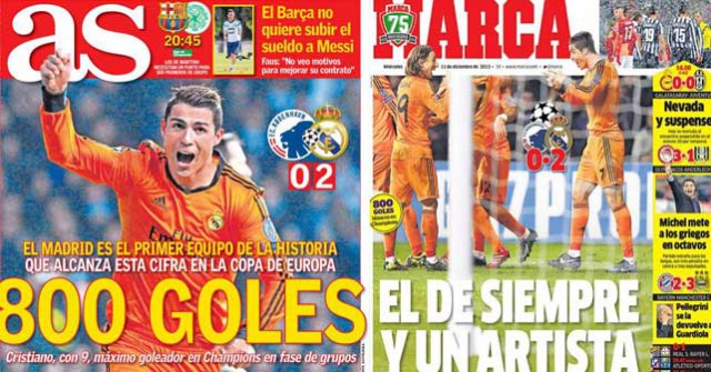 Madrid sports newspapers put their focus today on Real Madrid’s 0-2 victory over Copenhagen in the last match of the Champions League group stage.