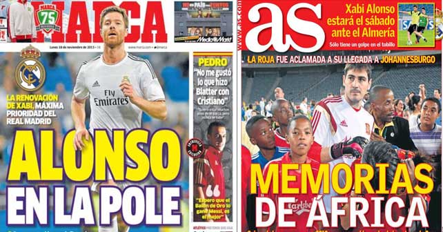 The other main Madrid sports paper, As, reports that Alonso, who suffered a contusion in Spain’s last match against Equatorial Guinea, will be fit for next Saturday’s La Liga clash at Almeria. “He has a minor contusion in his ankle,” they explain.