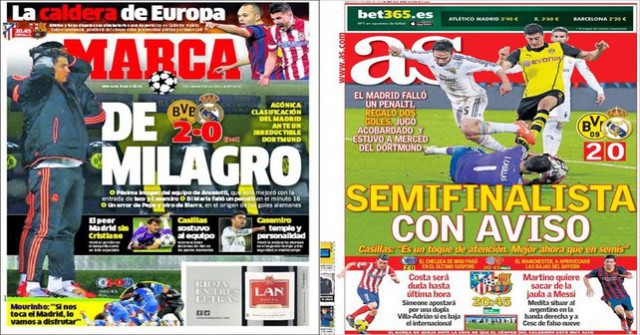 Angel di Maria missed a penalty in the 16th minute, and errors from Pepe and Asier Illarramendi allowed Marcus Reus to score twice in the first half. Los Blancos improved marginally in the second period and weathered the storm to end the two-legged affair as 3-2 victors overall.