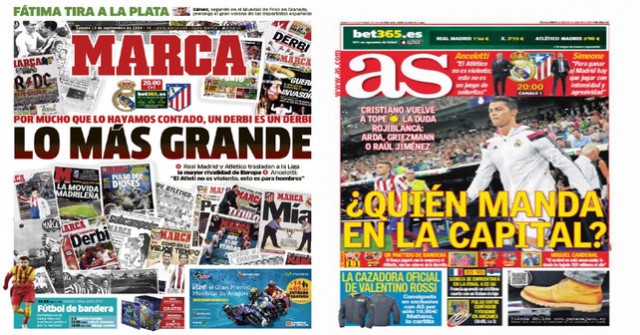 AS and Marca both go with headlines asking who will win the battle. Los Blancos are boosted by the return of Cristiano Ronaldo who has spent the last three weeks focusing on recovering from various injury niggles. For the visitors, Arda Turan should be back from injury, having appeared for Turkey midweek.