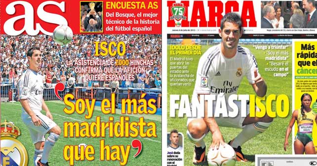 Isco cleared people’s doubts over him being a Barcelona fan during his unveiling as Real Madrid player, as both Madrid sports newspapers highlight.