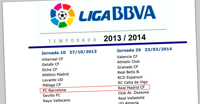 The fixture list for the 2013-14 La Liga campaign was published on Tuesday and the first thing Real Madrid and Barcelona always do is to check out on what date the first Clasico takes place.