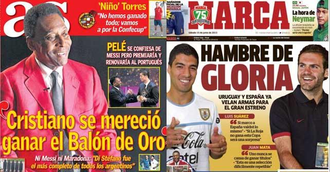 Madrid sports daily As brings to its front page Brazilian legend Pele words about Cristiano Ronaldo. The former Santos player said the Portuguese “deserved the Ballon d’Or” this year, when Leonel Messi won it for the fourth straight time.