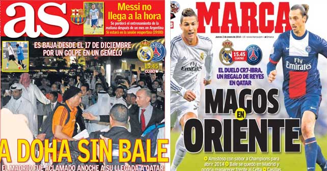 Madrid sports newspapers put their focus today on Real Madrid’s arrival to Doha, where they will face Paris Saint-Germain this afternoon in a friendly match.