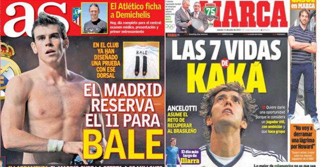 Marca’s main story in their front page is titled “The 7 lifes of Kaka”. The Madrid sports paper claims “Ancelotti takes on the challenge of recovering the Brazilian” and he will stay at least one more season at Bernabeu.
