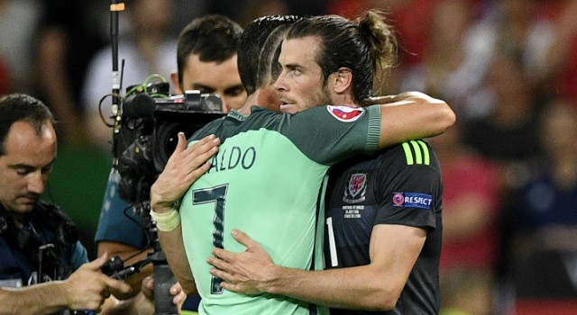 Real Madrid teammates Cristiano Ronaldo and Gareth Bale shared an emotional embrace following the Euro 2016 semi-final between Portugal and Wales.